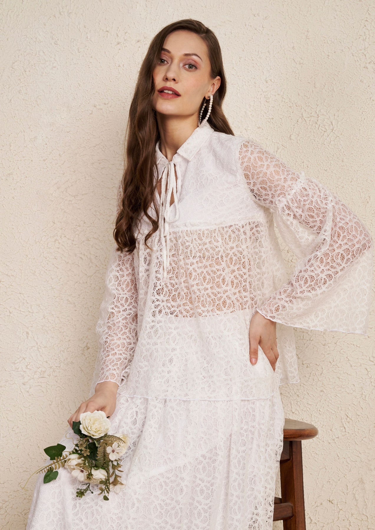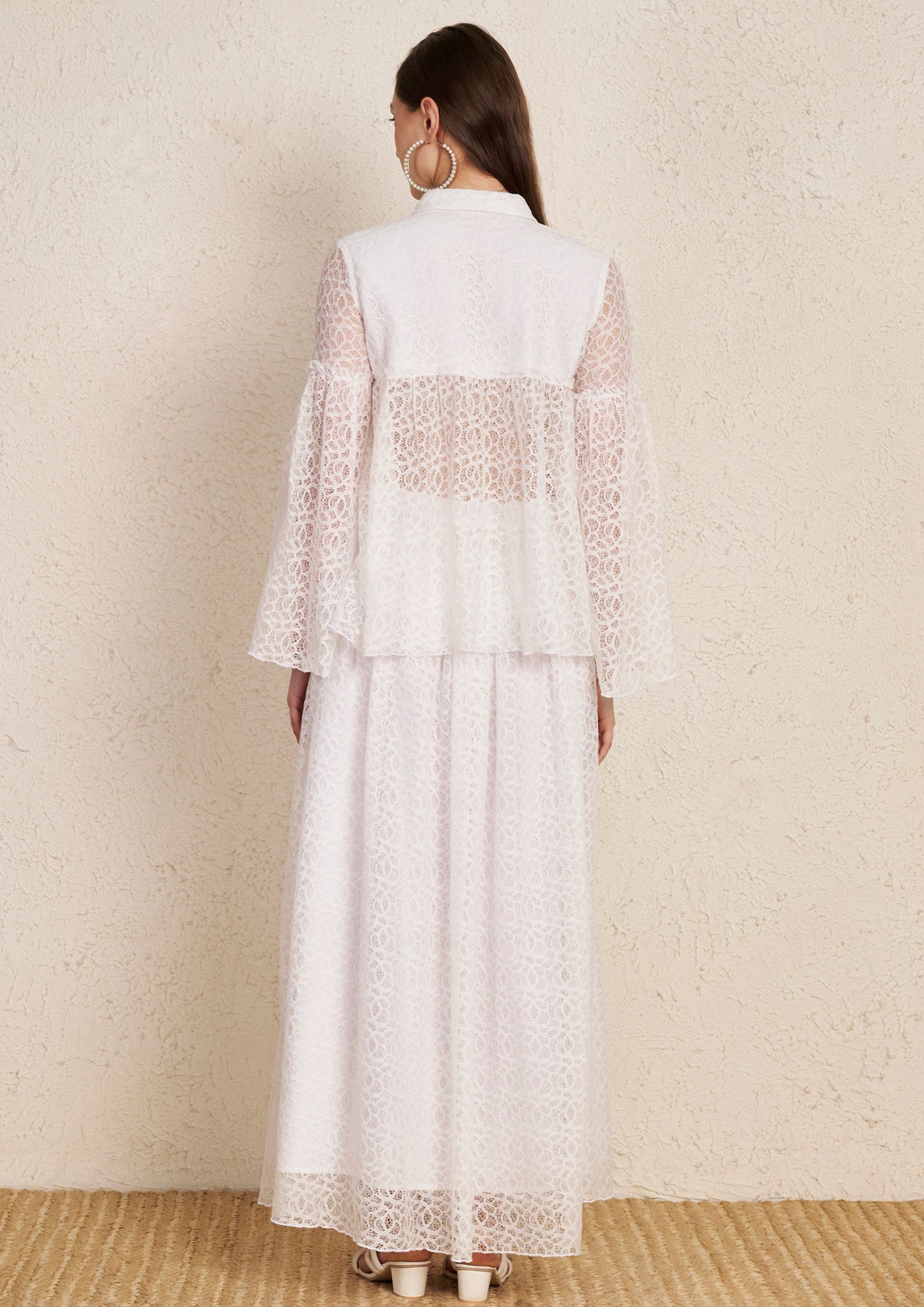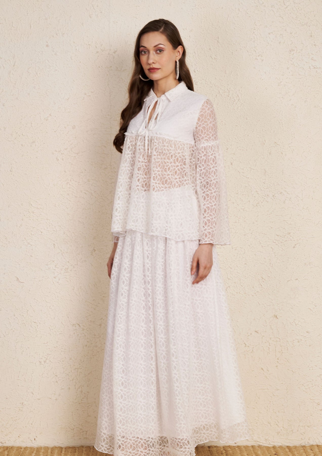 White Lace Top & Flared Skirt